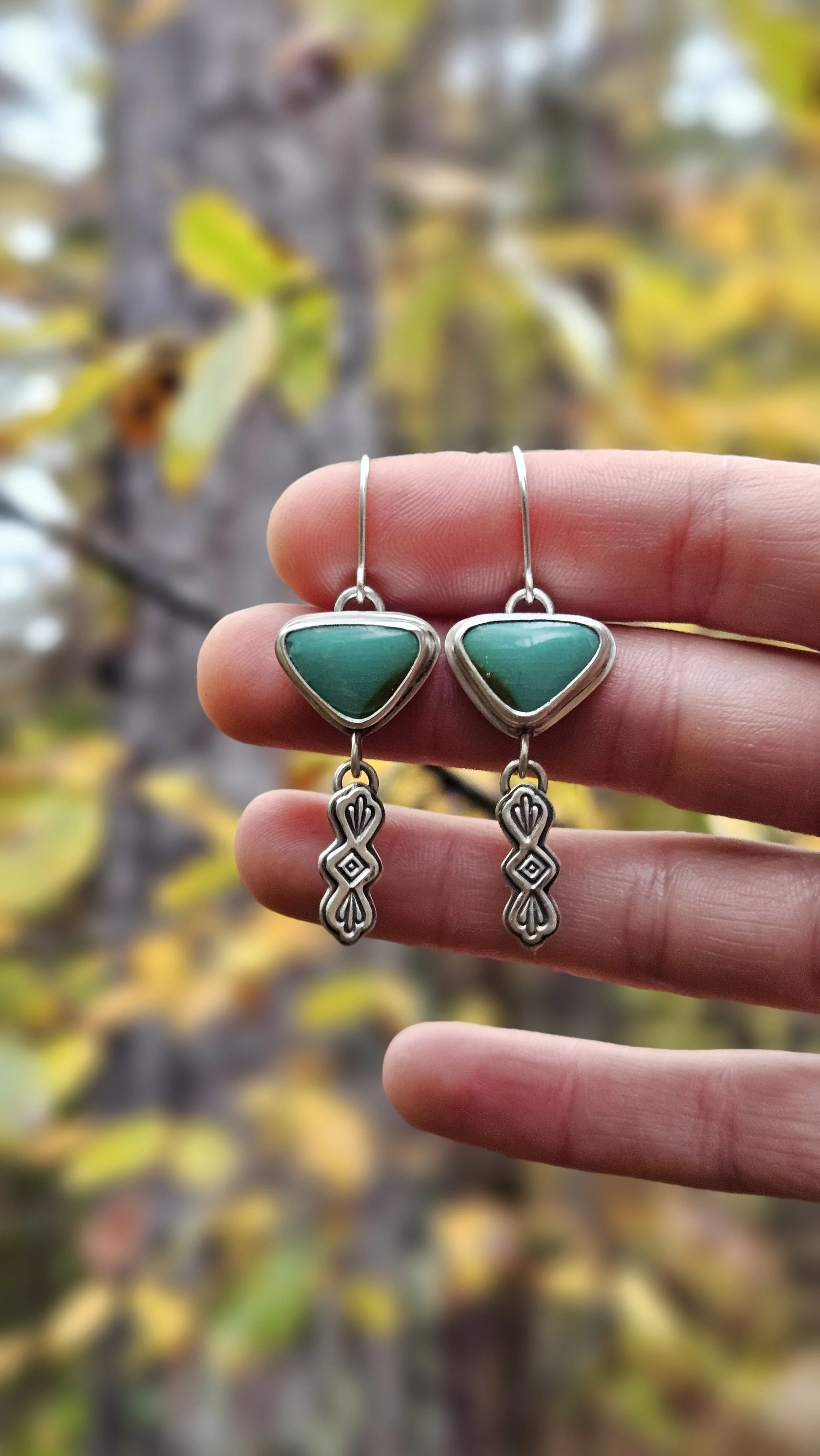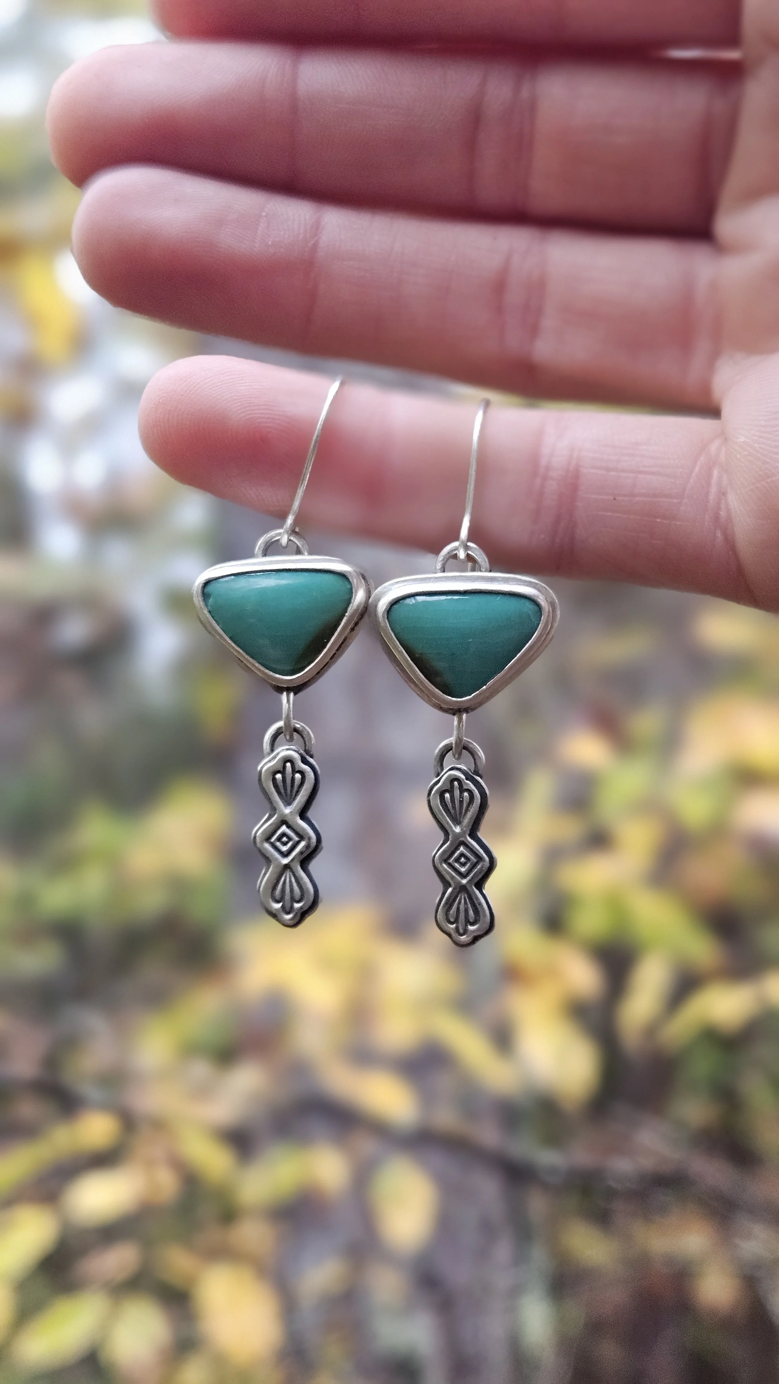One-of-a-kind earrings featuring southwest stamped dangles.
