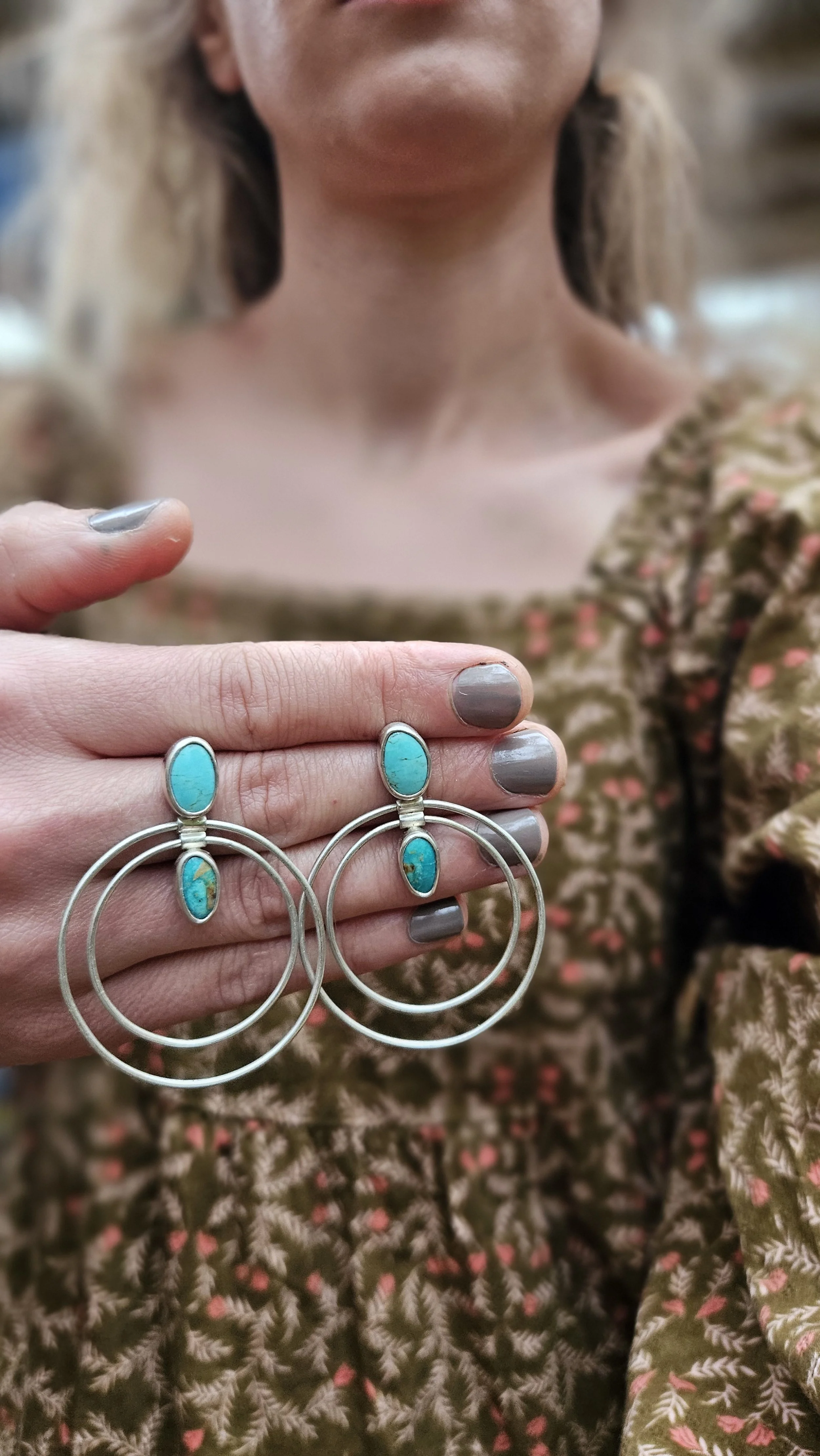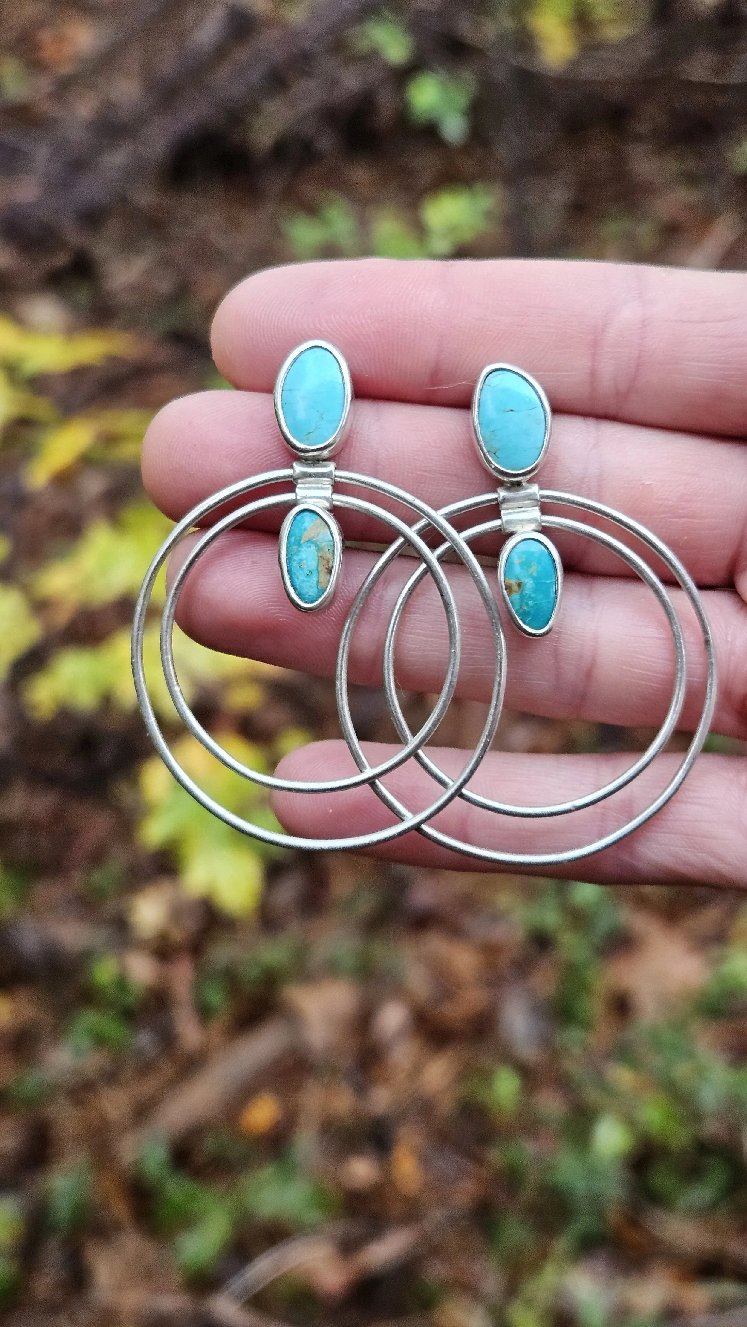 •Chilean turquoise stones, with 2 silver hoops hanging below.